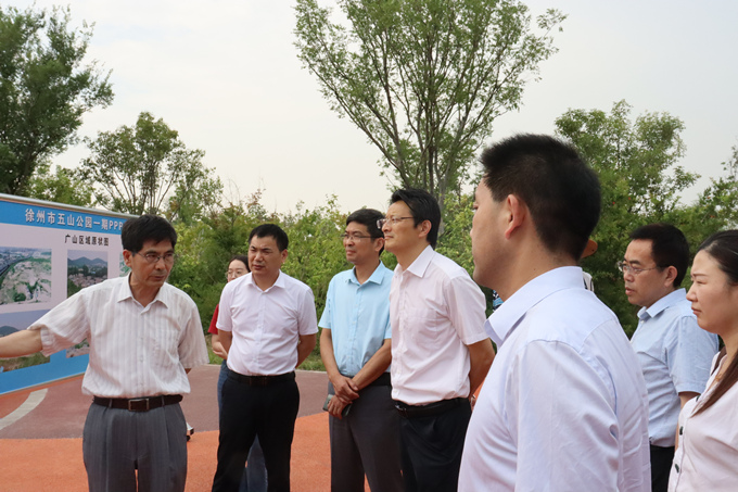 考察團(tuán)首先到徐州市進(jìn)行了考察,并在徐州市住建局相關(guān)領(lǐng)導(dǎo)的陪同下,通過(guò)實(shí)地察看、聽取介紹等形式,對(duì)徐州市政綠化建設(shè)、河道治理、城市中心游園綠化、水系建設(shè)、管理綠化以及配套設(shè)施建設(shè)等進(jìn)行了詳細(xì)考察。次日,考察團(tuán)實(shí)地考察了安徽交航公司承建的淮北市中湖礦山地質(zhì)環(huán)境治理PPP項(xiàng)目,詳細(xì)了解了中湖項(xiàng)目治理建設(shè)過(guò)程。